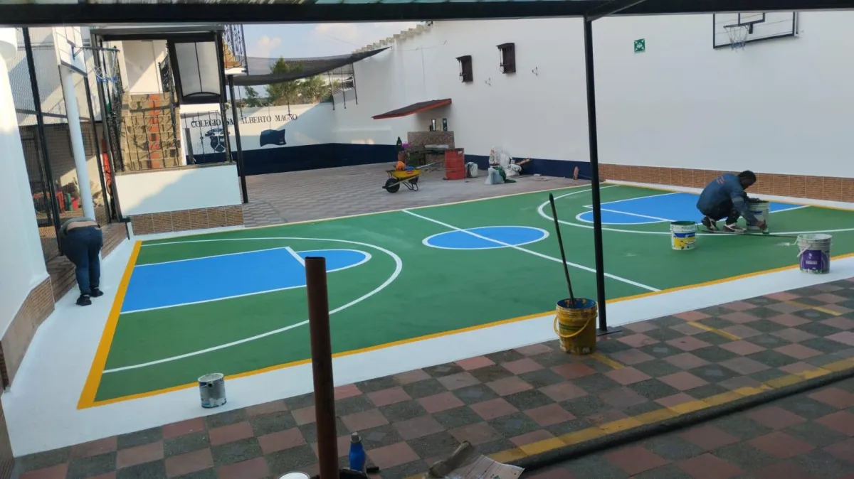 La pavimentación y señalización de canchas deportivas Incluye la aplicación de revestimientos acrílicos, epóxicos o de poliuretano, caracterizados por su alta durabilidad, resistencia a la abrasión y propiedades antiderrapantes.